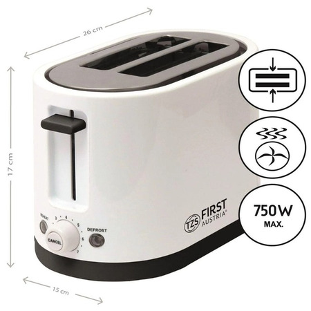 First FA-5368-3 – функціональний тостер компанії First Austria. Такий пристрій здатний подарувати вам насолоду сніданком зі свіжими і хрусткими скибочками хліба. Зазвичай їх намазують олією чи варенням, це дуже смачний та ситний вигляд сніданку. Дана модель тостера використовує заготовки під тостерний хліб квадратної форми, одночасно тостер може готувати два тости. First FA-5368-3 виробляє прожарювання тосту з двох сторін, в цілому пристрій має кілька рівнів підсмажування, які користувач може контролювати самостійно. Також є функція автоматичного викиду готових тостів нагору для зручнішого вилучення. У комплекті до тостера йдуть спеціальні щипці, якими найзручніше діставати готовий тост.