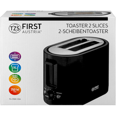 First FA-5368-3-BA – функціональний тостер компанії First Austria. Такий пристрій здатний подарувати вам насолоду сніданком зі свіжими і хрусткими скибочками хліба. Зазвичай їх намазують олією чи варенням, це дуже смачний та ситний вигляд сніданку. Дана модель тостера використовує заготовки під тостерний хліб квадратної форми, одночасно тостер може готувати два тости. First FA-5368-3 виробляє прожарювання тосту з двох сторін, в цілому пристрій має кілька рівнів підсмажування, які користувач може контролювати самостійно. Також є функція автоматичного викиду готових тостів нагору для зручнішого вилучення. У комплекті до тостера йдуть спеціальні щипці, якими найзручніше діставати готовий тост.