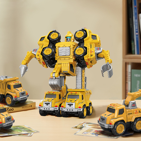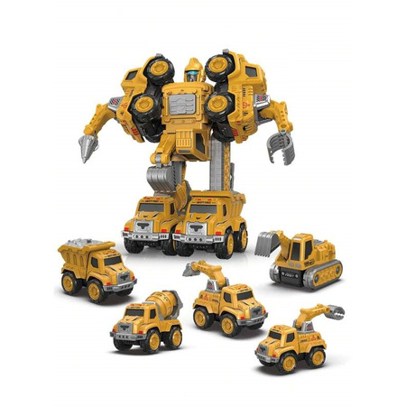5 машин превращаются в одного большого робота.