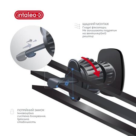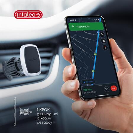 Компактний універсальний магнітний автотримач Intaleo CM05GG 6xN52 — зручно й безпечно кріпиться на решітку вентиляції передньої панелі авто з урахуванням оптимального кута нахилу. Достатньо просто прикласти пристрій до тримача.