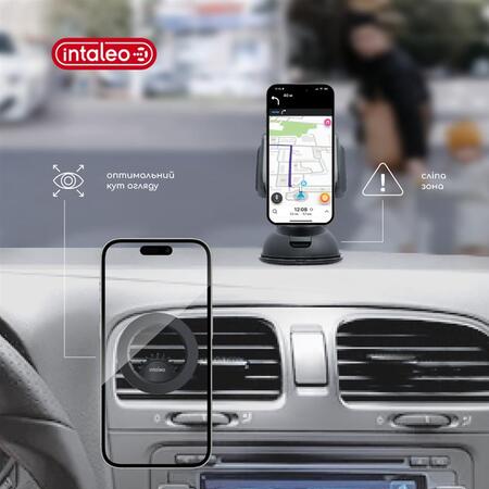 Компактний універсальний магнітний автотримач Intaleo CM06GG 20xN52 — зручно й безпечно кріпиться на решітку вентиляції передньої панелі авто з урахуванням оптимального кута нахилу. Достатньо просто прикласти пристрій до тримача.