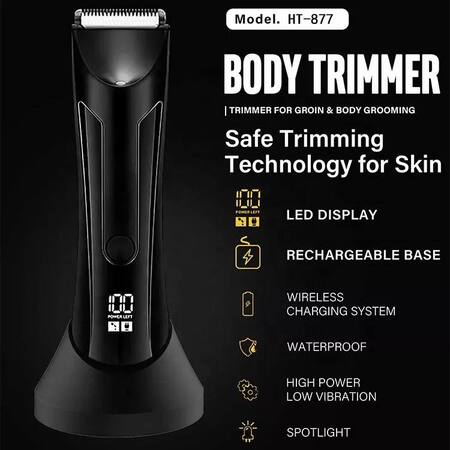 Тример акумуляторний для стрижки волосся та бороди НТ-877 з насадками та зарядною станцією