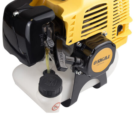 Бензиновий тример Sigma являє собою ручний моторизований виріб з верхнім розташуванням двигуна внутрішнього згорання. Принцип дії виробу дуже простий: обертальний рух від двигуна внутрішнього згорання передається на вал. Конічний редуктор здійснює механічну передачу крутного моменту від валу на шпиндель, на якому закріплений ніж або котушка з ліскою.