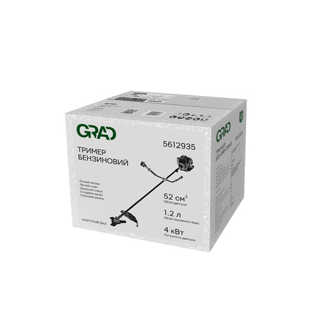 Тример бензиновий 4.0кВт 52см³ жорсткий вал U-ручка (котушка, ніж) (з 2-х частин) GRAD (5612935) підходить для невеликих приватних господарств та дачних ділянок площею 5-10 соток.