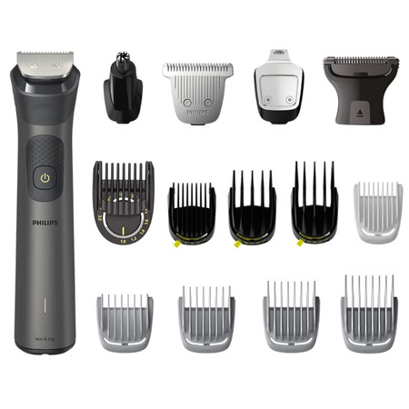 Створіть особливий стиль із цим універсальним тримером, до комплекту якого входять 15 якісних насадок для стрижки волосся на обличчі, голові та тілі. Високоточна насадка-тример дасть змогу точно підрівнювати волосся до потрібної довжини. Рівномірне підрівнювання за один прохід Запатентований гребінь тримера пропонує 11 установок довжини від 1 до 3 мм, забезпечуючи рівномірне підрівнювання волосся до потрібної довжини. Тример, який адаптується до вашої бороди Тример 125 разів на секунду сканує густоту бороди і підвищує потужність, коли це необхідно, щоб впоратися з більш густою, довгою або кущистою бородою. Довговічність, потужність і точний результат Леза з нержавіючої сталі завжди залишаються гострими для стабільної ефективності. Без змащування. Універсальний: для обличчя, голови та тіла Цей універсальний тример пропонує 15 інструментів для будь-яких завдань догляду за волоссям. Легко підстригайте волосся на обличчі, створюйте стрижки та збривайте волосся на тілі. Підрівнювання волосся на 30 % швидше Стрижка волосся на 30 % швидше завдяки надширокій (41 мм) машинці для стрижки з неіржавкої сталі, яка зістригає більше волосся кожним рухом. Створіть бажаний образ, обираючи установки довжини (4, 9, 12 і 16 мм) за допомогою надшироких гребенів. Забудьте про волосся на тілі З комфортом голіть волосся на тілі з окремою насадкою для гоління. Унікальна система захисних насадок для шкіри допоможе убезпечити чутливі ділянки під час гоління до довжини 0,5 мм. Також можна підрівнювати волосся на тілі за допомогою насадки-гребеня. Зручне та комфортне підрівнювання волосся у вухах і носі Цей універсальний тример швидко видаляє небажане волосся в носі та вухах без порізів і саден. 4 тижні роботи без підзарядки Потужний літій-іонний акумулятор тримера забезпечить до 120 хвилин роботи зі швидким 5-хвилинним заряджанням для максимальної довговічності та потужності. Легко відстежуйте заряд акумулятора Індикатор заряду акумулятора дає змогу відстежувати поточний заряд акумулятора: низький, мінімальний, триває заряджання або повний. Ви ніколи не залишитеся з наполовину поголеною бородою через розрядку акумулятора тримера. Вологостійкість для зручного використання та очищення Тример захищений від впливу вологи, і ви зможете з комфортом використовувати його в душі та легко очищати його проточною водою. Зручний хват і керування Тример зручний у використанні завдяки ергономічній прогумованій ручці для комфортного хвата.