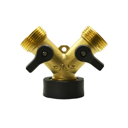 Трійник із двома кранами означає, що це пристрій з трьома виходами, на кожному з яких є кран. У вашому випадку розміри трійника - 3/4 нар. * 3/4 вн. позначають діаметри різьби зовнішньої (нарізної) та внутрішньої різьби в дюймах. Накидна гайка означає, що можна використовувати ключ для стягування/відкручування гайки.