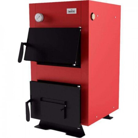 Технічні характеристики твердопаливного котла Marten Base MB-18: Номінальна потужність котла 18 кВт Опалювальна площа 180 м2 Паливо основне/альтернативне антрацит, кам'яне вугілля/дрова Площа поверхні теплообміну в котлі 1.8 м2 ККД, не менше 76 % Тривалість згоряння разового завантаження 5-8 годин Ємність води в котлі 47 л Вага котла без води 125 кг Необхідна тяга димових газів 20-25 Па Температура димових газів при виході з котла 140-220 0С Рекомендована мінімальна температура води 58 0С Максимальна температура води 95 0С Номінальний (максимальний) тиск води 0,25 МПа Випробувальний тиск води, не більше 0,4 МПа Споживання електроенергії, не більше Діаметр патрубків прямої та зворотної води 40 мм Розмір топки Глибина 570 мм Об'єм 63 дм3 Рекомендовані параметри димоходу Площа перерізу 248 м2 Внутрішній діаметр 178 мм Висота (мінімально допустима) 5 м D (х/в) 210/102