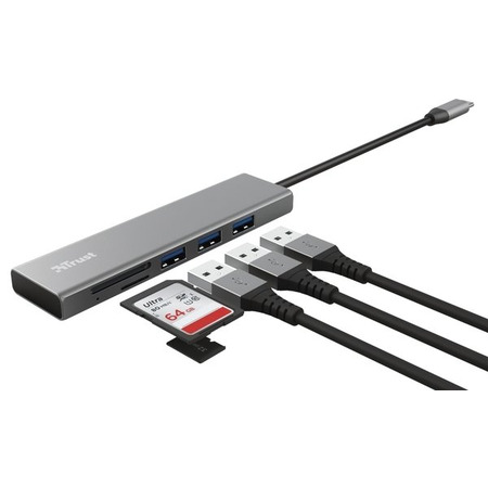 USB-хаб Trust Halyx USB-C 24191_TRUST - універсальний пристрій, який дозволяє підключити кілька пристроїв одночасно до вашого комп'ютера чи ноутбука через порт USB-C. Цей хаб має різноманітні порти, включаючи USB-A, HDMI, Ethernet, а також слоти для карт пам'яті SD і microSD, що дозволяє зручно підключати флеш-накопичувачі, миші, клавіатури, монітори, мережеві кабелі та картки пам'яті для розширення функціональності вашого пристрою. USB-хаб Trust Halyx USB-C 24191_TRUST виготовлений з якісних матеріалів і має стильний і компактний дизайн, що робить його ідеальним для використання вдома чи в офісі. Цей хаб допоможе зручно керувати підключеними пристроями, забезпечить швидку передачу даних і зробить вашу роботу з комп'ютером більш продуктивною та ефективною.