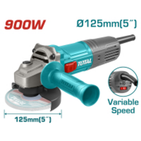 Кутова шліфмашина Total TG109125565 призначена для сухого різання різних будівельних матеріалів – металу,арматури, бетону, цегли, плитки, каменя, піно- та газоблока. Цей інструмент легко шліфує деревину та метал шліфувальними дисками. Регульований вручну кожух прикриває відрізний диск а також захищає від іскор, абразивного пилу та робочого сміття. Корпус із удароміцного пластику захищає внутрішні елементи від пошкоджень та подовжує термін використання інструментом. Вузький корпус КШМ зручно лежить у руці, це забезпечує надійний хват та контроль над болгаркою. Додаткова рукоятка може встановлюватись ліворуч або праворуч - підходить як правшам, так і шульгам. Модель Total TG109125565 має вхідну потужність 900 Вт, кількість обертів від 5000 до 12000 об/хв і підтримує встановлення абразивних дисків діаметром 125х22.2 мм. Вбудований регулятор оборотів дозволяє працювати з різними видами матеріалів залежно від навантаження. У комплекті додаткова знімна рукоятка, захисний кожух, фланцевий ключ, коробка.