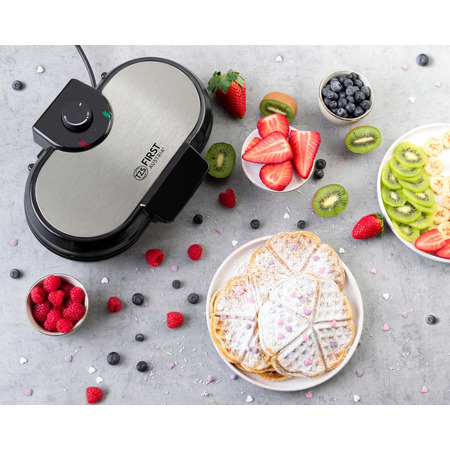 За допомогою FIRST FA-5305-2 ви зможете приготувати 10 красивих вафель рифлених у формі трикутника за один раз. Саме тісто не прилипає та не пригорає до керамічного покриття.