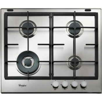 Варильна поверхня Whirlpool газова, 60см, чавун, конфорка з подвійним рядом полум'я, нерж