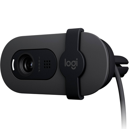 Веб-камера BRIO 100 Full HD 1080p з автоматичним балансом освітленості, вбудованою захисною шторкою і вбудованим мікрофоном.