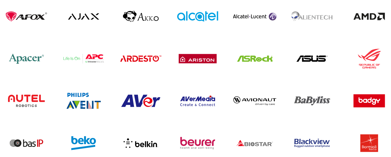 Ми з гордістю співпрацюємо з такими всесвітньо відомими брендами, як Apple, Samsung, Sony, LG та іншими. Ці компанії зарекомендували себе як надійні постачальники інноваційної та якісної продукції, що користується великим попитом на ринку. Співпраця з такими виробниками дозволяє нам пропонувати нашим клієнтам найкращі рішення для задоволення їхніх потреб.