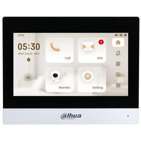 ● Дисплей: 7" TFT 1024 × 600;● Wi-Fi: підтримується;● ОС: LINUX;● Функції: відкриття дверей, "не турбувати";● Живлення: 12 VDC, 1 A; PoE;● Колір: білий