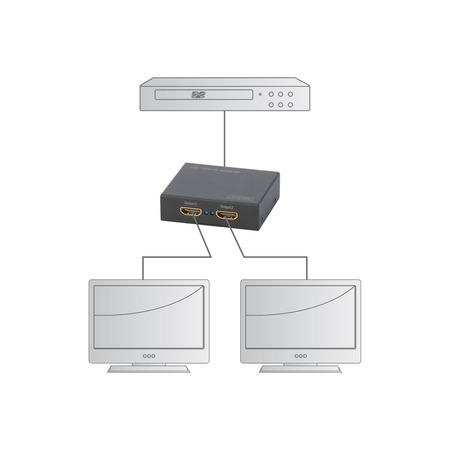Відеоспліттер DIGITUS HDMI DS-46304 - це пристрій, призначений для розділення високоякісного відеосигналу з одного джерела (INx1) на два вихідних відеопристрої (OUTx2). Це дозволяє підключити до двох відеопристроїв одночасно, таких як телевізори, монітори, проектори або інші відеоусі пристрої, для відтворення контенту з одного джерела, такого як приставки, комп'ютери, ноутбуки і т.д.