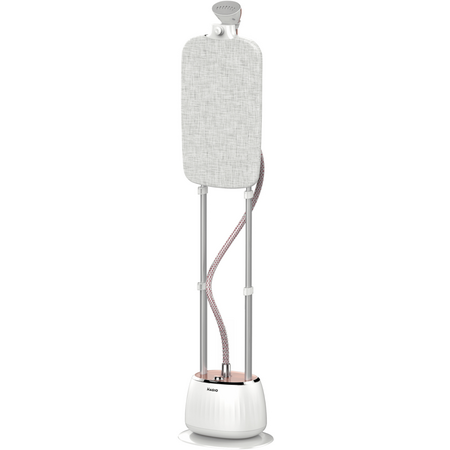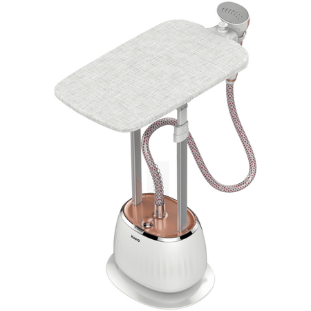 Стаціонарний відпарювач MG-330 – це сучасний пристрій, що дозволяє прасувати одяг і домашній текстиль, не витрачаючи багато зусиль. Також він швидко і ефективно дозволить обробити гарячою парою одяг, очищаючи і дезинфікуючи його. Має як горизонтальне, так і вертикальне відпарювання. Відпарювачем неможливо пошкодити навіть найтоншу і примхливу тканину – ні синтетичну, ні натуральну. Виріб контактує тільки з парою, температура якої 102°С. Прилад складається із парогенератора й резервуару з водою об’ємом 1,6 літрів. Потужність складає 1800 Вт, що є запорукою високої швидкості прасування. Відпарювач має сучасний мобільний дизайн з колесами, що забезпечує комфортне та легке пересування приладу квартирою. Продуктивність подачі пари становить 35 грами в хвилину, що дозволяє розгладити навіть найскладніші складки. В комплекті є дошка для відпарювання та термозахисна рукавичка. Стаціонарний відпарювач з таким набором можливостей значно полегшить життя, особливо, якщо в будинку діти.