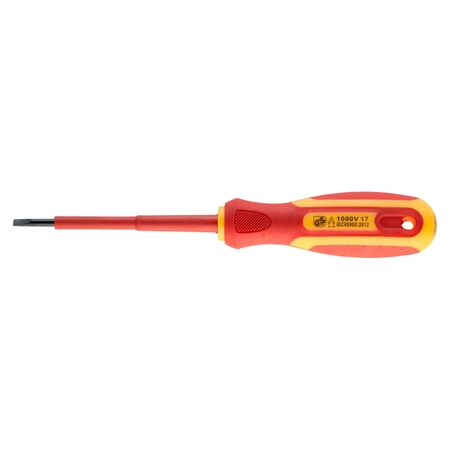 Викрутка діелектрична шліцева SL3.0×75 мм 1000 В CrV від виробника SIGMA (4008011) - це інструмент, який призначений для робіт з електричними мережами та проводами під напругою до 1000 В. Викрутка має шліцевий вікрутковий наконечник з розміром SL3.0 та довжиною 75 мм. Вона виготовлена з високоякісної хрому-ванадієвої сталі (CrV), що забезпечує міцність та довговічність інструменту. Діелектрична ізоляція викрутки дозволяє використовувати її безпечно під час роботи з електричними пристроями. Ця викрутка може бути незамінним інструментом для електриків та професіоналів, які працюють з електричними системами.