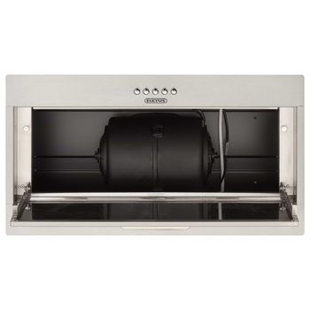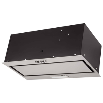 Витяжка повністю вбудовується в звичайну кухонну шафку шириною 60 см. Видимою залишається тільки передня панель з нержавіючої сталі, яка стійка до вологи та високих температур. Лаконічний дизайн витяжки гармонійно поєднується з кухнею і в стилі мінімалізм, хай-тек чи модерн.