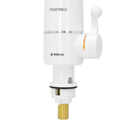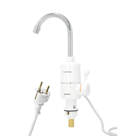Будова та принцип роботи проточного водонагрівача MONRO LZ 301 : вода у проточному водонагрівачі нагрівається миттєво, проходячи через нагрівальну колбу з нержавіючої сталі, в якій розташований нагрівальний елемент. Необхідна температура досягається регулюванням протоку води за допомогою ручки пристрою (зниженням підвищенням напору води на вході у водонагрівач). Температура водопровідної води може значно; коливатися протягом року: від 5С взимку до 20 С влітку. Тому при однаковій температурі води на виході з