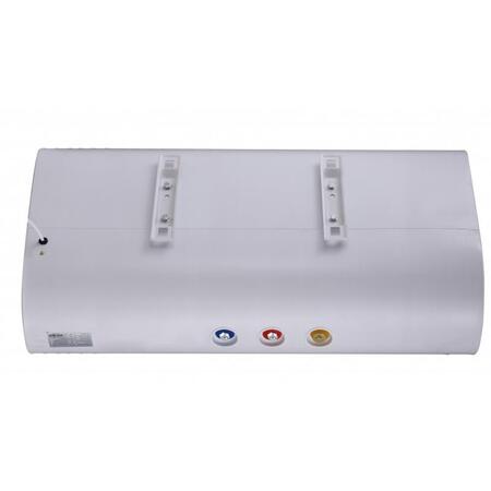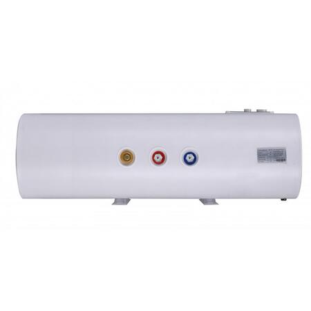 2 бака з емальованої сталі, сталевий зовнішній корпус покритий (забарвлений) емаллю. Водонагрівач призначений для горизонтальної установки (нижнє підведення труб водопостачання), подвійний погружний (мокрий) ТЕН з нержавіючої сталі SS316L (на одному фланці в одному баку), вибір одного з 3-х можливих режимів потужності: 2000/1200 / 800Вт.