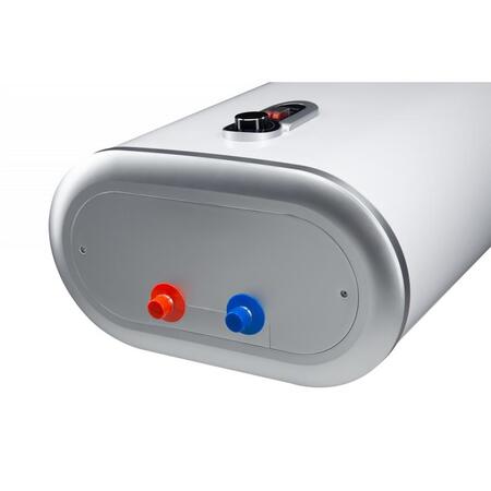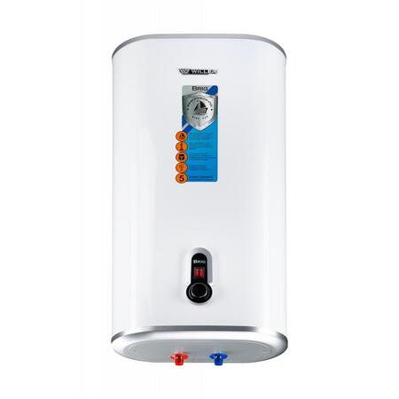 Willer IV50DR Brig - плоский електричний водонагрівач з внутрішнім баком з нержавіючої сталі AISI316 (відрізняється більш високою антикорозійною стійкістю в порівнянні з поширеною AISI304). Мінімальна глибина виробу (260-295мм з урахуванням монтажних планок) дозволить встановити бойлер навіть в обмежених простором умовах. У бойлері Willer IV50DR Brig встановлені два сухих нагрівальних елемента потужністю 1000 Вт кожен. Нагрівальні елементи розташовані в спеціальних захисних кожухах (фланці) і безпосередньо не контактують з водою, що значно збільшує їх довговічність і економічність.