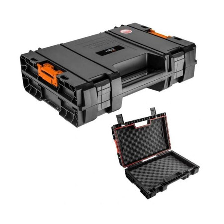 я зберігання та транспортування електроінструментів. Такі ящики зазвичай виготовляються з міцного пластику або металу і можуть мати різні розміри та дизайн відповідно до потреб користувача. У них можуть бути вбудовані відділення, ящики, ручки для перенесення, кріплення для інструментів та інші зручності для організації інструментів. Ящики для електроінструменту Neo Tools можуть бути високоякісними та надійними виробами, які допоможуть зберігати інструменти у порядку та зручно переносити їх з місця на місце