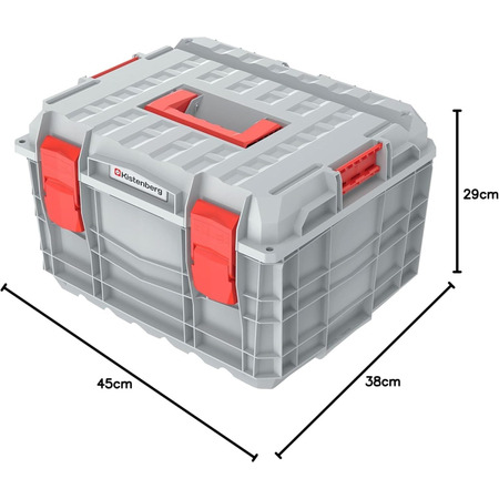 Цей ящик для інструментів від Kistenberg моделі C Block PRO має розміри 18 дюймів, що відповідає привблизно 45 на 38 на 29 сантиметрів. Код товару - KXC454030-4C. Цей ящик має міцну конструкцію і підходить для зберігання різноманітних інструментів.