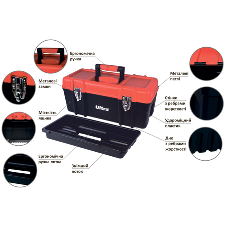 Де використовувати: Ящик ULTRA підійде для зберігання інструментів в будинку, на роботі, в автомобілі або під час відпочинку на природі.