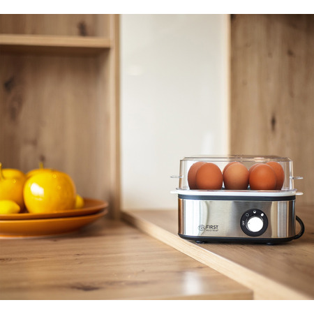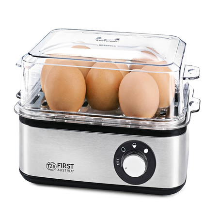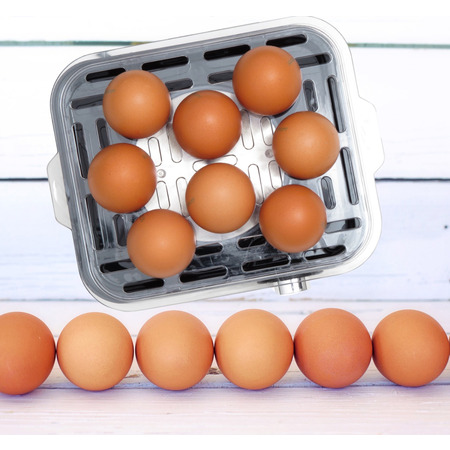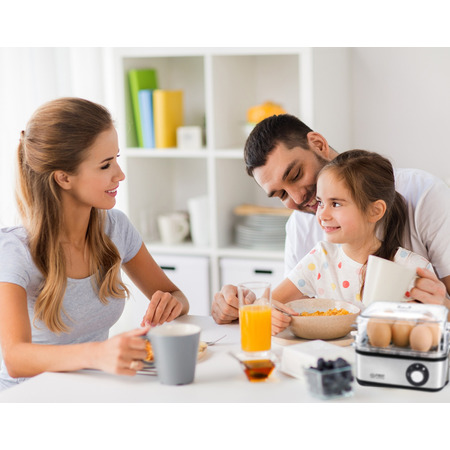 У яйцеварці можна готувати до 8 яєць одночасно. Готовність яєць залежить кількості води. Ніколи не пропустіть час приготування! Виконайте кілька отворів у яйцях за допомогою голки для яєць, щоб вони не лопнули під час приготування. Помістіть яйця на лоток для яєць і додайте необхідну кількість води за допомогою мірного стаканчика, щоб додати яйця круто, некруто або напівготові. Після приготування яйця можна зберігати у теплі до моменту вживання. З метою безпеки ставте яйцеварку на рівну суху поверхню. Підключіть шнур живлення до заземленої розетки. Індикатор загориться, сигналізуючи про увімкнення приладу.