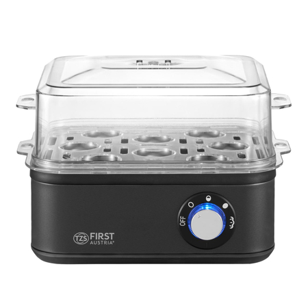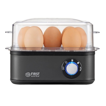 У яйцеварці можна готувати до 8 яєць одночасно. Готовність яєць залежить кількості води. Ніколи не пропустіть час приготування! Виконайте кілька отворів у яйцях за допомогою голки для яєць, щоб вони не лопнули під час приготування. Помістіть яйця на лоток для яєць і додайте необхідну кількість води за допомогою мірного стаканчика, щоб додати яйця круто, некруто або напівготові. Після приготування яйця можна зберігати у теплі до моменту вживання. З метою безпеки ставте яйцеварку на рівну суху поверхню. Підключіть шнур живлення до заземленої розетки. Індикатор загориться, сигналізуючи про увімкнення приладу.