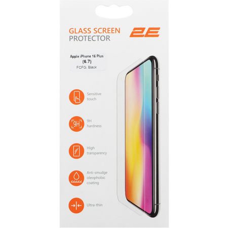 Захисне скло 2E для Apple iPhone 16 Plus(6.7), 2.5D FCFG, (1 Pack), чорна рамка