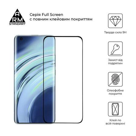 Захисне скло ArmorStandart FullScreen Full-Glue закриває не тільки дисплей смартфона, але і його рамку, при цьому клеїться по всій площі дисплея. Воно володіє якісним олеофобним покриттям, яке перешкоджає появі відбитків пальців.