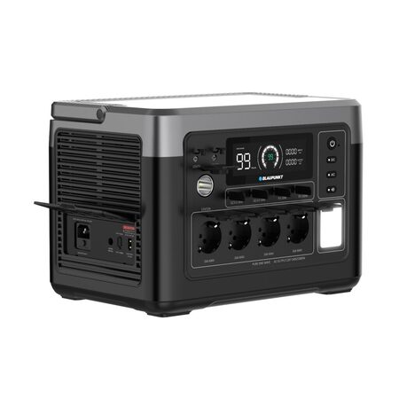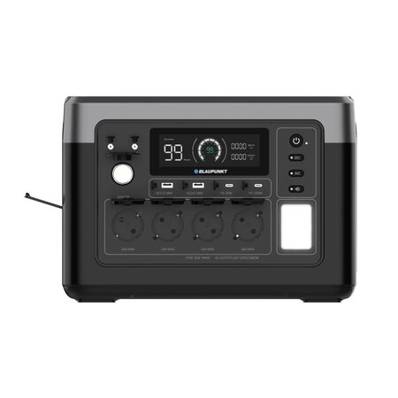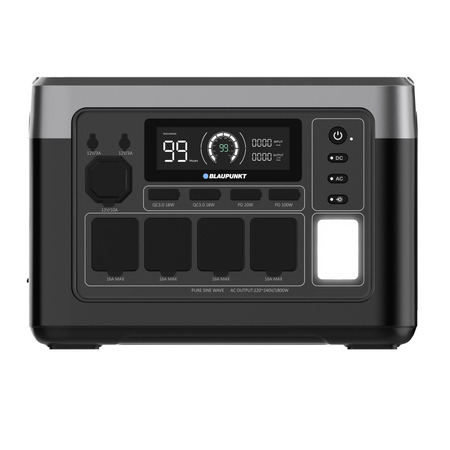 Застосування Blaupunkt JuiceBox 1000 - ідеальний компаньйон для пригод на природі, походів, вечірок у саду, будівельних майданчиків без підключення до електромережі або як надійне аварійне резервне джерело живлення. Завдяки компактному дизайну, зручній ручці для перенесення та літій-залізо-фосфатному акумулятору ємністю 1024 Втч він забезпечує електроживлення в будь-якому місці та в будь-який час. Способи виведення енергії Видаючи вихідну потужність до 1800 Вт від мережі 220 В через 4 розетки Schuko, JuiceBox може забезпечити живлення практично будь-якого електронного приладу. Потужні прилади (наприклад, фени, плити, електроінструменти): близько 1 години Пристрої середньої потужності (наприклад, холодильники, комп’ютери, телевізори, освітлення): 5–20 годин Чіткий дисплей відображає споживання в реальному часі і час роботи, що залишився. Крім того, кілька USB-портів (2хUSB 2.0, 2хUSB Type-C) дозволяють заряджати смартфони та інші мобільні пристрої; батарея цієї портативної електростанції забезпечує близько 50-100 циклів заряджання типового акумулятора телефону. 2 розетки DC5521 і автомобільна розетка 12 В задовольняють решту потреб у мобільному живленні. Варіанти зарядки Blaupunkt JuiceBox 1000 пропонує гнучкі варіанти заряджання: Побутова розетка потужністю 1000 Вт (повна зарядка менш ніж за 1 годину) Автомобільний прикурювач для заряджання під час руху Сонячні панелі потужністю до 500 Вт, що робить його екологічним енергетичним рішенням Термін служби Розроблений для тривалої роботи, JuiceBox 1000 витримує понад 4000 циклів заряджання, забезпечуючи роки надійної роботи. Мобільний додаток Підключіть JuiceBox до програми Wonderfree для дистанційного керування пристроєм. Програма дозволяє регулювати параметри потужності, відстежувати споживання енергії в режимі реального часу та контролювати внутрішню температуру, забезпечуючи повний контроль та зручність використання зі смартфона.