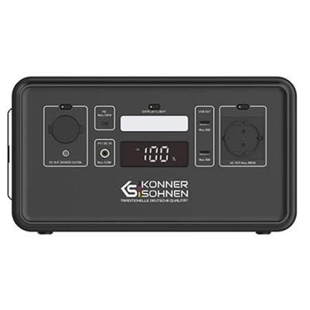 Мобільна портативна електростанція KS 300PS німецької торгової марки Könner & Söhnen виготовляється з використанням високоякісних LifePO4 літій-залізо-фосфатних акумуляторів високої ємності, які мають більш високу енергетичну щільність в порівняні з Li-ion, вони можуть зберігати більше енергії в компактному форматі та мають великий життєвий цикл – 4000 циклів заряд-розряд. Вона стане надійним помічником для зарядки пристроїв в дорозі або в разі збоїв електропостачання. Її потужності буде достатньо для роботи такої техніки як смартфон, цифрова камера, планшет, дрон, міні-холодильник, насос для накачування, вентилятор. Вона працює тихо, тому дозволить живити електричні пристрої та насолоджуватись часом без будь-якого заважаючого шуму.