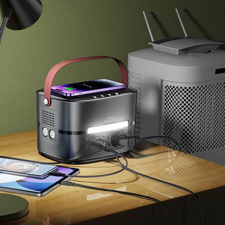 До корпусу моделі прироблена складана ручка для зручності перенесення. Важить портативна зарядна станція близько 2.44 кг. Підсвічування в конструкції моделі представлене LED-смужкою на боці корпусу з роз’ємами підключення та двома світлодіодними лампочками ліхтарика на одному з вузьких торців корпусу. До речі, у системі підсвічування реалізовано функцію подачі тривожного сигналу SOS. Дисплею в оснащенні пристрою не передбачається. Дозволяється одночасне підключення до 5 гаджетів.