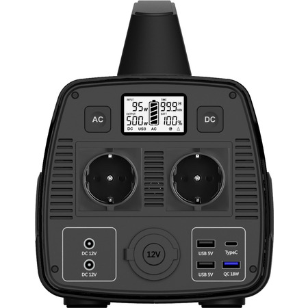 Універсальна зарядна станція для дому, дачі, відпочинку на природі. Може бути джерелом живлення для мережевих приладів, а також заряджати дрібну портативну техніку (телефони, планшети, блютус колонки) в режимі повербанка. Зарядна станція забезпечена монохромним LCD-дисплеем для відображення поточної інформації про режим роботи: відображається рівень заряду станціі, час роботи до повної розрядки, який автоматично розраховується на основі заряду батареї та потужності споживання підключених приладів в режимі реального часу, інформація про помилку якщо рівень споживання приладів вищий за потужність станції. Зарядна станція побудована на базі літій-іонних акумуляторів, завдяки чому вона має великий ресурс роботи, відсутня саморозрядка, та ефект пам’яті.