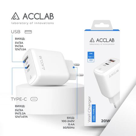 ACCLAB AL-TC220 з портом USB Type-C швидко та розумно заряджає пристрої. У поєднанні з вражаючою потужністю 20 Вт ваш смартфон зарядиться досить швидко.