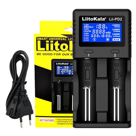 "Розумний" зарядний пристрій для пальчикових нікель-металогідридних і літієвих акумуляторів від компанії Liitokala. Двоканальна версія зарядного пристрою Lii-PD4.