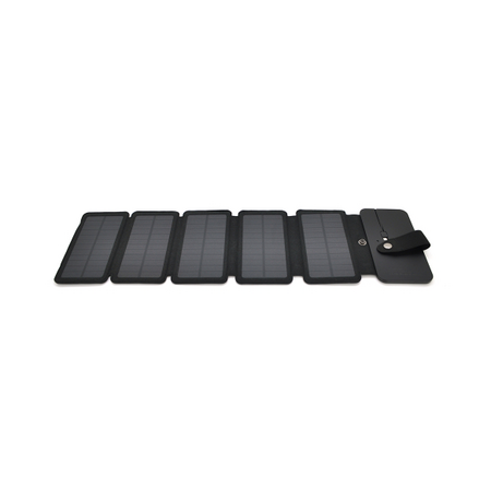Портативна сонячна панель 5 Foldings — це один із пристроїв, які можуть суттєво полегшити життя в будь-яких умовах, адже забезпечує можливість швидкого заряджання практично всіх USB-пристроїв, як повербанків (powerbank), смартфонів, камер, ноутбуків тощо, без прив`язки до мережі, а просто під прямим сонячним промінням. Цей продукт є аварійним зарядним пристроєм на сонячних батареях з вбудованим microUSB - кабелем. особливості: • Зручність: у будь-який час та у будь-якому місці ви можете вчасно зарядити свій мобільний телефон. • Компактний розмір та легкий дизайн, зручно носити із собою • Сумісність із телефоном та іншими цифровими продуктами • 5-елементна сонячна панель Характеристики • Тип: Зовнішня сонячна батарея • Вихід: 5 / 1,2 А • Заряджання від сонячної енергії • USB-A вихід • Габарити у складеному стані (ВхШхД): 5х86х118 • Габарити у розкладеному стані (ВхШхД): 26х550х118 • Вага: 254 г • Гарантія: 6 місяців