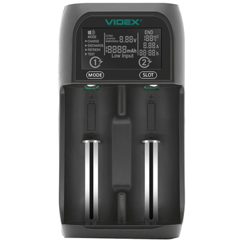 ● Сумісність з акумуляторами: Li-ion/IMR: 10440, 14500, 16340, 17500,17650,17670, 18490, 18500, 18650, 20700, 21700, 22650, 26500, 26650, 36250; Ni-MH/Cd: АААА, ААА, АА, А, SC,C, D;● Вхід: USB Type-C, DC 5V/2A, 10W;● Вихід 1: DC 4,2V 1A X2/2A X1; DC 3,65V 1A X2/2A X1; DC 1,48V 1A X2;● Вихід 2: DC 5V 2.1A USB;● Розміри: 135 x 73 x 37 мм