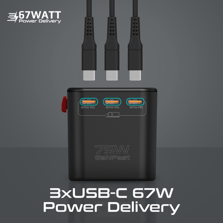Технологія GanFast: Завдяки використанню компонентів з нітриду галію енергоефективність підвищилася на 40%, а виділення тепла зменшилося на 50% порівняно з типовими зарядними пристроями.