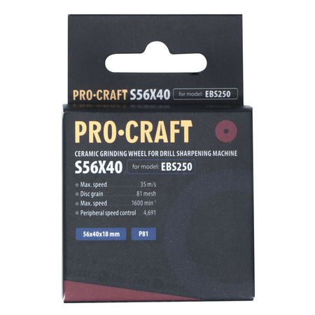 Основні характеристики заточувального керамічного диска Procraft S56X40 до EBS250 можуть включати: