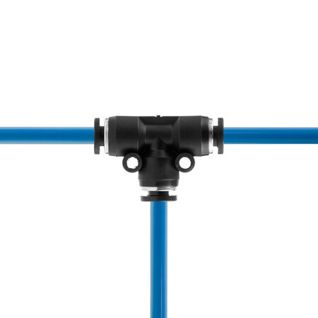 Цангове з'єднання T-подібної форми використовується для створення пневматичних магістралей і для монтажу пневмосистем. Забезпечує повністю герметичне з'єднання різних пневматичних шлангів без пошкодження їхньої поверхні (PU, PE, PA) - поліуретанових, поліетиленових, поліамідних тощо.