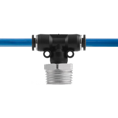 Цангове з'єднання T-подібної форми використовується для створення пневматичних магістралей і для монтажу пневмосистем. Забезпечує повністю герметичне з'єднання різних пневматичних шлангів без пошкодження їхньої поверхні (PU, PE, PA) - поліуретанових, поліетиленових, поліамідних тощо.