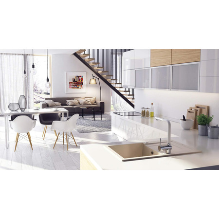 Змішувач Deante ASTER з висувним виливом (BCA_W730) може також мати один важель для зручного управління температурою води та потоком. Чорний колір змішувача надає йому стильний та елегантний вигляд, який пасує до різних кухонних інтер'єрів.