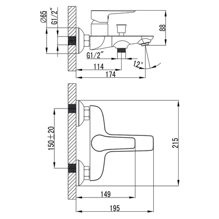 Змішувач GARDA Ø35 для ванни литий CORSO BC-1C121W (9605203)