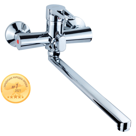 Змішувач HK Ø35 для ванни гусак прямий 350мм дивертор вбудований картріджний AQUATICA (HK-2C230C)