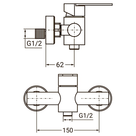 Змішувач для душа укомплектований шлангом з нержавіючої сталі (довжиною 1,5 м), лійкою з двома режимами роботи і тримачем з ABS-пластика, а також кріпильними елементами. Спосіб монтажу - настінний.