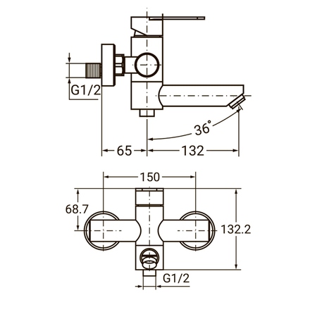 Змішувач HT Ø35 для ванни гусак прямий 100мм дивертор вбудований картріджний SS AQUATICA (HT-2C171P)