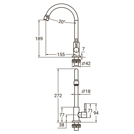 Змішувач для раковини модель KT-1G170P виготовлений з нержавіючої сталі і є монокраном, тобто розрахований на подачу одного виду води. Даний тип змішувача відмінно впишеться в інтер'єр заміського будинку, кафе, ресторану. Завдяки плавним формам корпусу і благородному матовому відблиску, виріб має естетичний зовнішній вигляд і захищений від механічних пошкоджень.